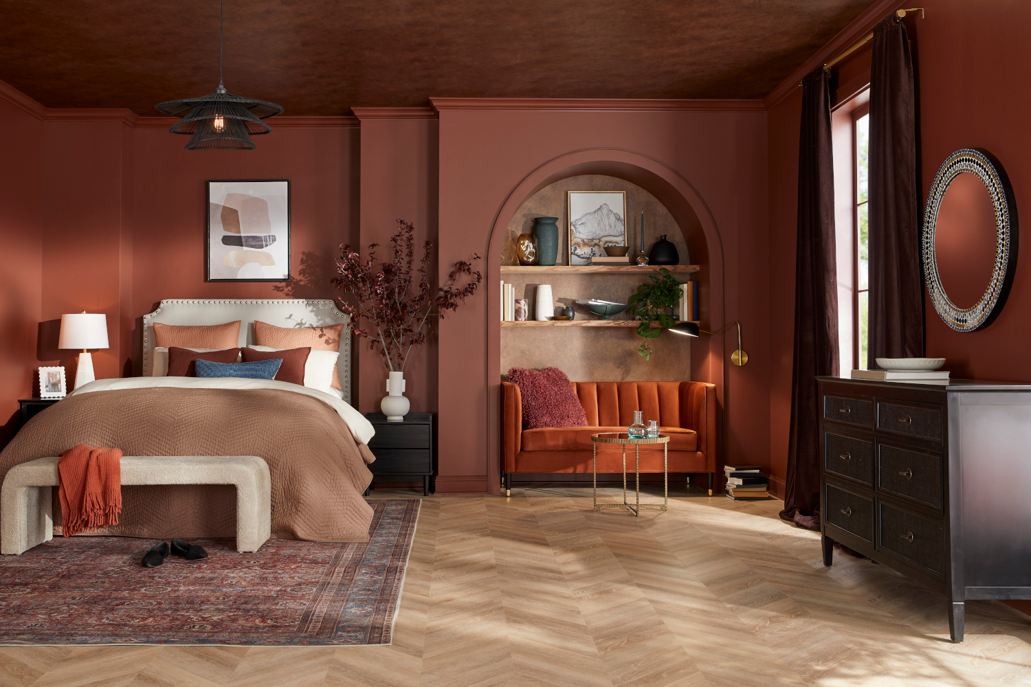 Rjava barva deluje prizemljeno, domačno in zanesljivo. Prostor ogreje in ustvari občutek udobja ter pristnosti, odlično se ujema z lesom, kamnom in naravnimi materiali. Svetlejši odtenki, kot sta peščen in bež, so pomirjujoči, temnejši pa dodajo toplino. Odlična je kot barva za stene v spalnici, kuhinji, jedilnici in drugih prostorih.