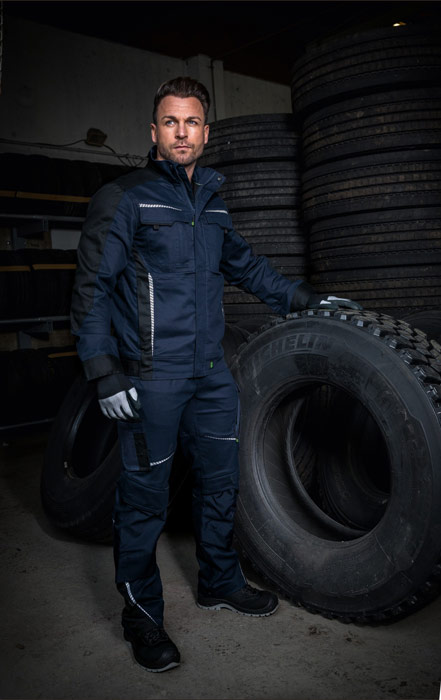 Trpežne delovne hlače do pasu Leibwächter Flex-Line z ravnim krojem in odsevniki za boljšo vidnost.