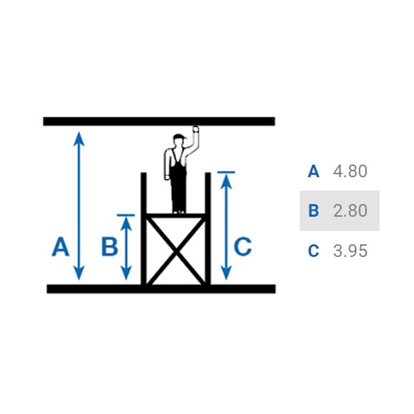 - Optimalna stabilnost od delovne višine 3,80 m dalje zahvaljujoč jekleni prečki visoke trdnosti.