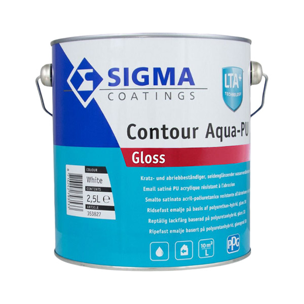 SIGMA Contour Aqua-PU Gloss je vrhunski sijajni emajl na osnovi alkidne smole z visoko odpornostjo proti praskam in odrgninam, ki se redči z vodo in je primeren za notranjo in zunanjo uporabo.