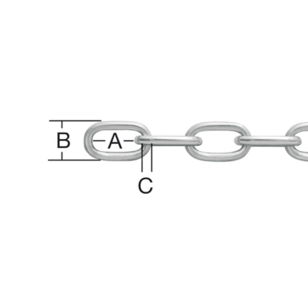Večnamenska pocinkana jeklena veriga z zvarjenimi ter čisto raziglani členi tipa A.