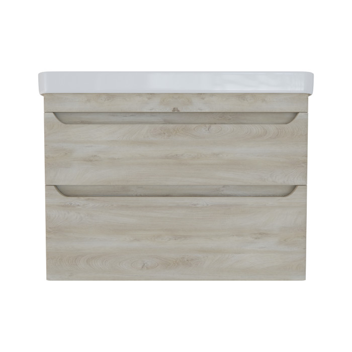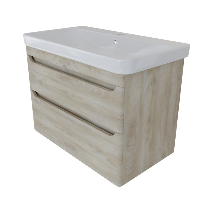 Viseča kopalniška omarica s keramičnim umivalnikom Linea Elegant v sodobnem dizajnu, ki ga odlikujeta preprostost in funkcionalnost. Prostorni predali, z izrezi za odpiranje in počasnim zapiranjem, nudijo obilo prostora za shranjevanje kopalniških potrebščin. Izdelana je iz kakovostnih mediapan (MDF) plošč, z zaobljenimi robovi, v celoti ter brezšivno oplaščenimi s PVC folijo, ki omarici daje vzdržljivost in odpornost na vlago in praske.