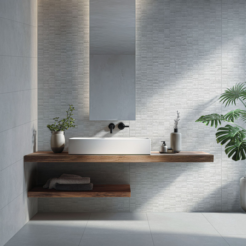 Stenska keramična ploščica iz kolekcije Indira Texture priznanega italijanskega proizvajalca Idea Ceramica.