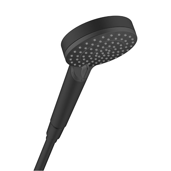 Ročna prha Vernis Blend Vario, v elegantni črni mat izvedbi. Z dvema funkcijama pršenja; Rain in IntenseRain.