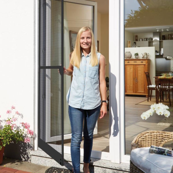 Krilni komarnik Plus učinkovito ščiti pred komarji, muhami in drugimi žuželkami, hkrati pa nudi nemoten pretok zraka. Trpežen aluminijast okvir in UV-odporna mreža iz steklenih vlaken zagotavljata dolgo življenjsko dobo in odpornost na vremenske vplive. Magnetni sistem omogoča varno zapiranje tudi ob prepihu, medtem ko ščetka po obodu dodatno zatesni komarnik in prepreči vdor insektov. Antracitna barva omogoča boljšo vidljivost, saj je za človeško oko manj opazna. Udarna plošča ščiti komarnik pred poškodbami, ergonomski ročaj na zunanji strani in notranje držalo pa zagotavljata preprosto uporabo.