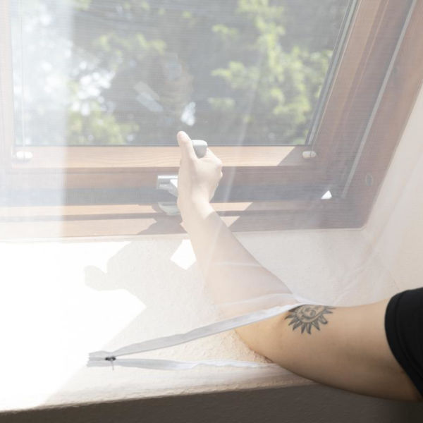 Zaščitna mreža proti komarjem, muham in drugim žuželkam za strešna okna, opremljena z všito zadrgo, ki omogoča enostavno odpiranje in zapiranje oken brez odstranjevanja mreže. Komarnik je izdelan iz UV-odpornega poliestra, prilagodljiv po velikosti in pralen pri 30 °C. Bela barva mreže deluje kot tanka zavesa, ki poleg zaščite zagotavlja več zasebnosti.