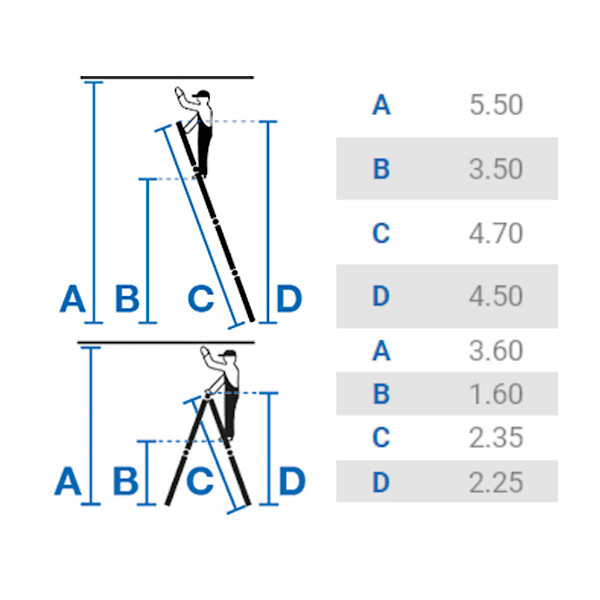 Višina samostoječ dvodelni "A" način (vertikala): 2,25 m