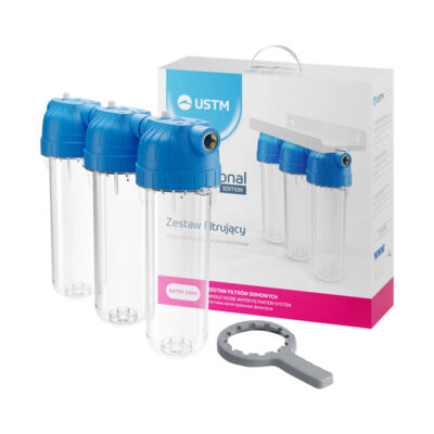 Trojni hišni filtrirni sistem za pitno vodo, sestavljen iz treh ohišij za vodni filter, kar omogoča kakovostno 3-stopenjsko filtriranje vode za gospodinjstvo. Posebna ohišja so ojačana s PET surovinami in zmorejo delovanje pri tlaku do 10 barov s pretokom 2 m³ na uro, kar zagotavlja zanesljivost in vzdržljivost v vseh pogojih. Z inovativnim odtokom vode IZZI Clean, omogočajo preprost in higieničen način brez nereda ali razlitja. Glave so opremljene s tlačnim razbremenilnim ventilom za spuščanje zraka oz. pritiska in rešitvijo "click", ki ščiti pred prekomernim privijanjem ohišja, kar poveča varnost vsakodnevne uporabe. Uporabljeni materiali so brez BPA, zato je izdelek popolnoma varen za zdravje.Prednosti:Povečana vzdržljivost zaradi uporabe PET materialaPreprosta in higienska menjava kartuš zahvaljujoč odtoku vodeHitra in enostavna namestitev - brez potrebe po uporabi preje, teflona ali nitiPriročna namestitev - na levo ali desno stranPovečan pretok vode"Click" sistem zaščite pred prekomernim privijanjem ohišjaNe vsebuje BPA, zato je uporaba varna za zdravjeVsebina seta: 3x ohišje, 3x nastavek za odtok vode, 3x pritrdilna sponka za odtok vode, 3x centrirni obroč, ključ za odvijanje ohišja, kavelj za obešanje ključa, vijaki za pritrditevTehnične lastnosti:Priključek: 1" (zunanji navoj)Velikost (vložek): 10"Maks. delovni tlak: 10 barPretok vode: 2 m3/hDelovna temperatura: 2-35 °CDimenzije (ŠxGxV): 45 x 15 x 37 cm