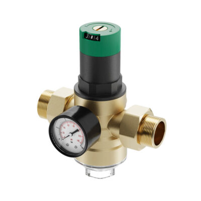 Membranski regulator in reduktor tlaka, ki omogoča popoln nadzor ter regulacijo tlaka vode v vodovodnih inštalacijah. Ščiti sistem in priključene naprave pred poškodbami zaradi nihanj tlaka in zahvaljujoč natančni regulaciji ostane nastavljeni izhodni tlak stabilen tudi ob tlačnih sunkih na vhodu. Poleg tega vgrajen mrežasti filter iz nerjavečega jekla učinkovito lovi onesnaževalce, kot so rja, pesek in mulj, kar zagotavlja dolgoročno in nemoteno delovanje celotnega sistema.Prednosti:Natančna regulacija tlaka - nastavljeni izhodni tlak ostane stabilen, tudi pri nihanjih vhodnega tlaka.Vgrajen manometer - omogoča sprotno preverjanje, ali je znižani tlak znotraj pričakovanega območja in ali naprava deluje pravilno.Mrežasti filter 40 mikronov - učinkovito lovi onesnaževalce, kot so rja, pesek in mulj, kar zagotavlja nemoteno delovanje sistema.Tehnične lastnosti:Material: baker, nerjaveče jeklo in plastika (ABS)Velikost ventila: 3/4"Maks. vhodni tlak: 20 barMaks. izhodni tlak: 6 barDelovna temperatura: 1-40 °CMerilno območje manometra: 10 barDimenzije (širina/višina/globina): 145 x 155 x 60 mmNatančnost filtracije: 40 mikronovVsebina kompleta: reduktor tlaka, silikonsko tesnilo (2 kosa), manometer, ključ, polspojke (2 kosa)