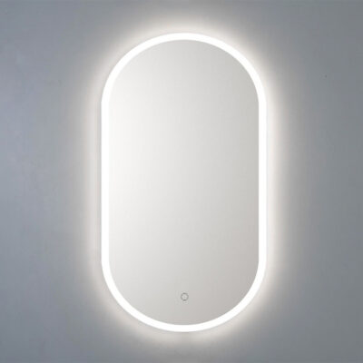 Stensko ogledalo, ovalne oblike, z LED ambientalno osvetlitvijo zadaj, upravljanje (vklop/izklop) na dotik s pomočjo stikala na senzor ter funkcijo zatemnitve. Obrobni pas ogledala je zaključen s peskanjem.Dimenzije (ŠxV): 500 x 900 mmGlobina: 30 mmDebelina stekla: 4 mmBarvna temperatura: 4000 K (hladno bela)Svetilnost: 1650 lmRazred zaščite: IP44LED trak: SL2835 | 4,3 W/m | 770 lm/mBarvni indeks CRI: > 80Energijski razred: C
