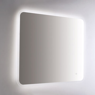 Stensko ogledalo, pravokotne oblike z zaobljenimi robovi, z LED ambientalno osvetlitvijo zadaj, upravljanje (vklop/izklop) na dotik s pomočjo stikala na senzor ter funkcijo zatemnitve. Ogledalo je reverzibilno in se ga lahko namesti pokončno ali ležeče. Obrobni pas ogledala je zaključen s peskanjem.Dimenzije (ŠxV): 600 x 800 mmGlobina: 30 mmDebelina stekla: 4 mmBarvna temperatura: 4000 K (hladno bela)Svetilnost: 1900 lmRazred zaščite: IP44LED trak: SL2835 | 4,3 W/m | 770 lm/mBarvni indeks CRI: > 80Energijski razred: C