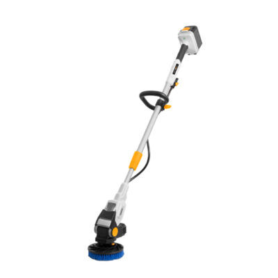 Brezžični akumulatorski čistilec z dvojno vrtljivo krtačo in teleskopskim ročajem Twin Brush, zasnovan za učinkovito čiščenje obsežnih površin, kot so avtomobili, avtodomi, čolni, terase, pločniki, dvorišča in drugo. Ponaša se s patentiranima nasprotno vrtečima se krtačama, ki temeljito odstranita umazanijo z minimalnim naporom, zmogljivim brezkrtačnim motorjem in trpežno aluminijasto konstrukcijo, ki bosta zagotovila najboljše rezultate čiščenja in dolgo življenjsko dobo.Inovativen sistem dveh nasprotno vrtečih se krtač v eni za globoko in učinkovito čiščenje, ki zmanjšuje upor in maksimizira stik s površino.Nastavljiva glava omogoča izbiro kota ščetkanja v območju od -15° do 90°, kar doprinese prilagodljivost pri uporabi in optimalen nadzor nad postopkom čiščenja.Dodaten ročaj in trpežna konstrukcija iz aluminijastega jekla, zagotavljata ergonomsko udobje in vzdržljivost za dolgotrajno uporabo.Možnost priključitve cevi za vodo na glavo krtače poskrbi za neprekinjeno pršenje neposredno na krtačo in tako najboljše rezultate čiščenja.Priložena črna mehka krtača, idealna za pranje ter čiščenje občutljivejših površin, kot so čolni, počitniške prikolice/kamperje, mobilne hišice in podobno.Priložena modra srednje trda krtača, idealna za vsesplošno pranje in čiščenje površin, kot so notranja in zunanja keramika, zunanje leseno pohištvo, garažna vrata, lesene palube, stene, tla in še veliko več.Visok zaščitni razred IPX7 in 100% vodotesna zasnova, vključno s pokrovom baterije, omogočata uporabo pod vodo, kar povečuje vsestranskost pri uporabi.Teleskopska palica, ki se razteza od 1,35 m do 1,8 m, nudi neprimerljiv doseg za enostavno čiščenje katere koli površine v udobnem in ergonomskem delovnem položaju.Tehnične lastnosti:Napetost: 18 VTip baterije: Li-IonHitrost zunanjega diska brez obremenitve: 200 vrt/minHitrost notranjega diska brez obremenitve: 400 vrt/minOcena vodotesnosti: IPX7Velikost zunanjega diska: 180 mmVelikost notranjega diska: 90 mmNastavitev kota glave krtače: -15° do 90°Teža izdelka: 2,95 kgMere izdelka (D x Š x V): 179,5 x 10,5 x 17 cmObseg dobave: 1x čistilec Twin Brush Telescopic Power Scrubber • 2x krtača (mehka in sredenje mehka) • 1x baterija 2,0 Ah 18V Maxxpack • 1x polnilnik 2,4 A MaxxpackPredstavitev čistilne krtače Twin Brush: