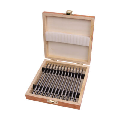 Sploščeni svedri s centrirno konico in brušenimi rezalnimi robovi oz. krilci, ki omogočajo natančno in stabilno vrtanje v vse običajne vrste lesa in laminat. Izdelani so iz visokokakovostnega kaljenega orodnega jekla in so zanesljivi ter hitri, saj se zaradi geometrije sredinskega in stranskega rezalnika luknje izvrtajo zelo hitro.Set vsebuje:13 svedrov dimenzij 6 / 8 / 10 / 12 / 13 / 14 / 16 / 17 / 18 / 19 / 20 / 22 in 25 mm, dolžine 150 mm, s hitrim 6-kotnim 1/4" (E 6.3) vpenjanjemLesena sortirna škatla