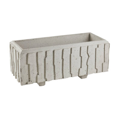 Betonsko korito za cvetlice, okrasne rože, grmičevje in razno rastlinje. Z reliefno oblikovano površino. Idealno za hortikulturno urejanje zunanjega bivalnega okolja; vrtov, parkov, parkirišč, cestišč in drugo.