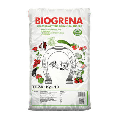 Visokokakovostno organsko gnojilo z največjim številom mikroorganizmov, ki biološko aktivirajo tla.Biogrena je gnojilo popolnoma naravnega izvora. Bogati tla z organskimi snovmi in pospešuje nastajanje humusa kot osnovnega dejavnika rodovitnosti. Zaradi izjemno visoke mikrobiološke aktivnosti vpliva na življenje v tleh, ga revitalizira in vzpostavlja biološko ravnotežje ter omogoča sproščanje v tleh naloženih hranil. Biogrena je popolnoma homogeno gnojilo, ki ima stalno kakovost.Vsebuje vsa glavna in mikrohranila, huminske in fulvinske kisline ter 22 milijard mikroorganizmov na gram,Ne vsebuje klic bolezni, rastlinskih škodljivcev in semena plevelov,Visokokakovostna organska hrana je toplotno obdelana in peletirana,Vsebuje kar 40% organske snovi, kar poveča biološko aktivnost tal za kakovosten in stabilen pridelek,Vsebuje veliko huminskih kislin 5-10% za hitrejšo rast in boljšo odpornost rastlin,Gnojilo v obliki mikropelet je lažje trositi in pelete se bolj enakomerno razgradijo v zemlji.