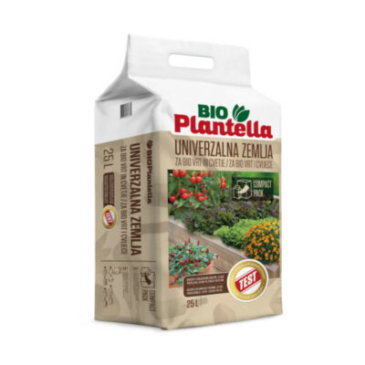 Naravna visoko kakovostna univerzalna zemlja BIO PLANTELLA, izredno bogata z organskimi snovmi, je idealna za gojenje vseh vrst rastlin v vrtu, posodah in visokih gredah. Vsebuje optimalno mešanico treh najkakovostnejših naravnih šot, bogatih s humusom, in dodatek vseh potrebnih organskih hranil. Rastlinam nudi dober vodno-zračni režim, izboljšuje zmožnost korenin za vsrkavanje vode in hranil ter povečuje količino mikroorganizmov in delež organske snovi v tleh. Tako univerzalna zemlja omogoča idealne pogoje za naravno zdravo rast in razvoj rastlin, dober pridelek in lep videz rastlin.