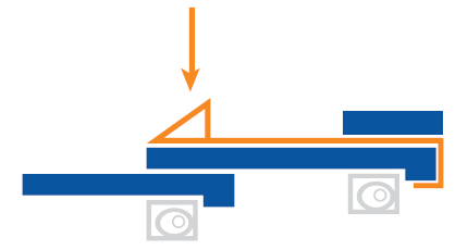 Naleganje snegobrana je izredno pomembno zaradi razporeditve sile na ostrešje. Na sliki 1 je razvidno nepravilno naleganje točkovnega snegobrana, ki je prekratek za izbrano kritino. Sila pritiska na kritino izven podpore, kar povečuje možnost loma strešne kritine, zato bodite pozorni na pravilno dolžino snegobrana – za običajne kritine je dolžina 380 mm. S tem dosežete pravilno razporeditev pritiska na lego, kar omogoča optimalno in dolgotrajnejšo rabo vaše kritine.