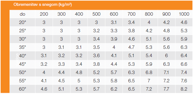 Potrebno število snegobranov za vašo strešino odčitate iz preglednice 2.