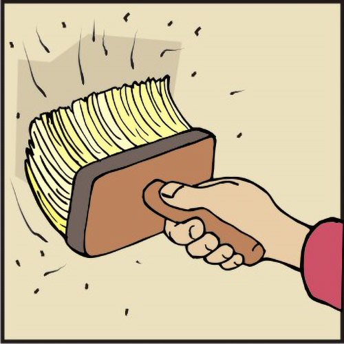 1. Na mestu poškodbe z dletom odstranite vse zrahljane kose ometa in s čopičem ometite delčke prahu.