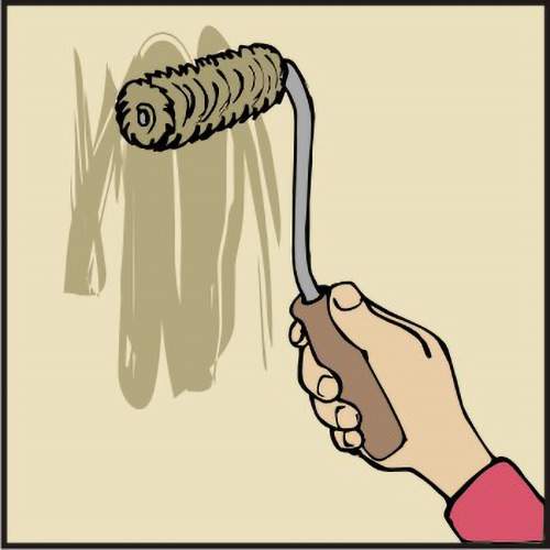 5. Tako pripravljeno steno prebarvamo z zidno barvo.